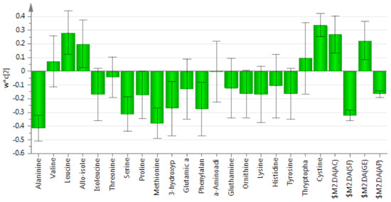 | Methionine | 16.71 ± 0.21 c | 22.62 ± 0.56 a | 19.49 ± 0.19 b | 21.40 ± 2.14 a |