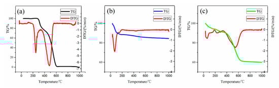The TG-DTG (Thermogravimetric-Derivative Thermogravimetric) curves of (a) RSV, (b) silica aerogel and (c) RLSA.