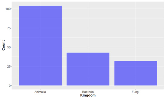 - Ruggerio, M.A.; Gordon, D.P.; Orrell, T.M.; Bailly, N.; Bourgoin, T.; Brusca, R.C.; Cavalier-Smith, T.; Guiry, M.D.; Kirk, P.M. A Higher Level Classification of All Living Organisms. PLoS ONE 2015, 10, e0119248. [Google Scholar]