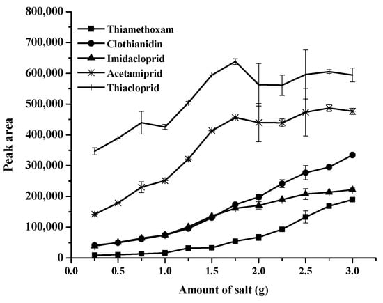 Effect of the amount of salt on the extraction of studied neonicotinoids.