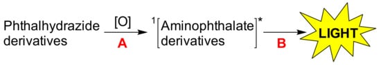 Steps involved in phthalhydrazide derivatives’ chemiluminescence.