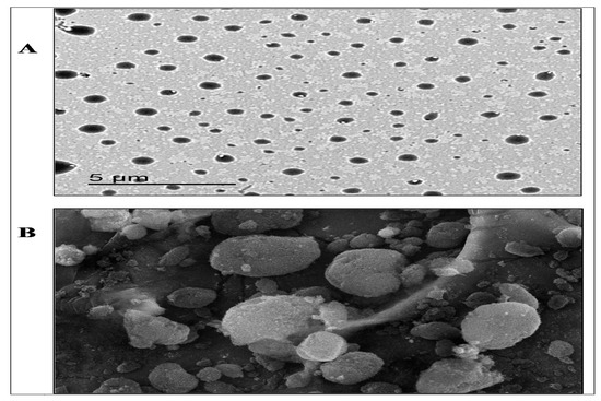 The surface morphology of the best CBZ-SLN formulation was examined by a transmission electron microscope (JTEM model 1010, JEOL®, Tokyo, Japan). A sample of the best CBZ-SLN formulation was diluted with distilled water followed by the application of one drop in a collodion-coated copper grid. After the sample was dried, it was stained by a uranyl acetate solution and examined by TEM after drying at an acceleration voltage of 100 kV [23,24].