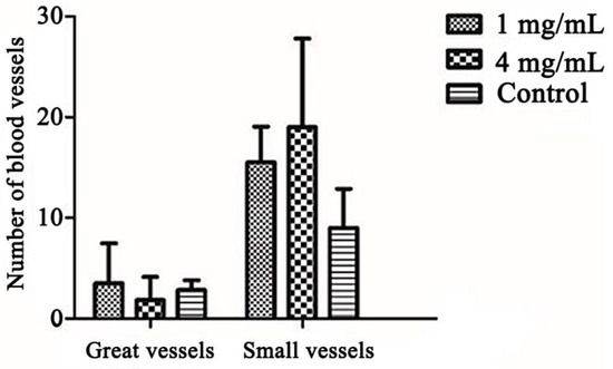 Compound DG-15 increased the number of blood vessels with different concentrations: 1 mg/mL; 4 mg/mL and Control group.