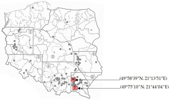 The Subcarpathian region, located in the southeastern part of the country (number 6 in Figure 1) is considered exceptionally important for winemaking in Poland. At present, close to 150 vineyards are located there, and most of them environmentally friendly, whose total area is estimated at over 100 hectares [7,8]. Thanks to specific terrain features (foothills with gentle slopes, clay soils, poorly industrialized) and microclimate (hot summers and sunny autumns), the region has become a perfect location for the development of winemaking, as well as winemaking tourism [8].