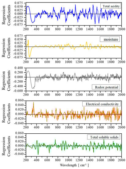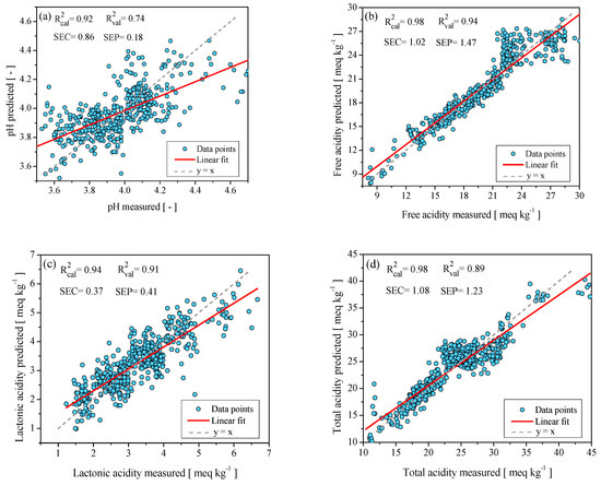 2.2.1. Chemometric Models to Predict pH, Free Acidity, Lactonic Acidity, and Total Acidity