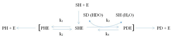 It should be noted that the primary kinetic isotopic effect is characterized by an increase in the energy (En) of rupture for bonds formed by heavier isotopes, for example, Enrupture(A–D) > Enrupture(A–H) (where A is atom). In some studies, attempts were made to extrapolate the data obtained in vitro to in vivo systems [40,41].