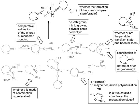 This “coordination-insertion” mechanistic concept was successfully applied in DFT modeling of ROP of different cyclic substrates catalyzed by the complexes of main-group, transition and rare-earth metals. Detailed DFT modeling of the ROP pathways for each particular case should take into account the following important issues: