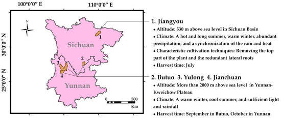 The main cultivated regions of Fuzi in Sichuan and Yunnan Provinces.