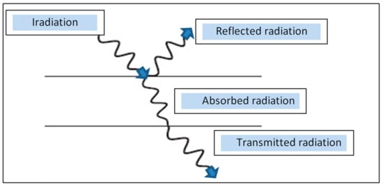 Infrared heating depends on the spectrum because the energy emitted from the emitter consists of different wavelengths and part of the radiation depends on the source temperature and the lamp emission. The phenomenon of radiation becomes more complex because the amount of radiation that falls on any surface depends not only on the spectrum, also on the direction. Electromagnetic radiation is weakened as a result of absorption by the medium as well as scattering. The process of converting radiation to other forms of energy is a phenomenon of absorption, while in the case of scattering, the radiated energy is directed to another destination from the original direction of propagation as a result of the combined effect of reflection, refraction, and deviation, and all these factors cause weak electromagnetic radiation [13,34].