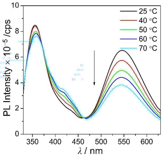 PL spectra of C2 in toluene (30 μM, λex = 322 nm) as functions of temperature.