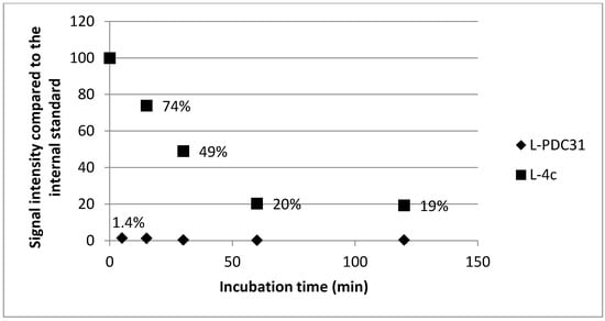 | 4f | H3C(CH2)15- | 15.0 a | 15.1 b | >94 | 627.9128 ([M + 2H]2+) | 627.9105 ([M + 2H]2+) | 0.3 |