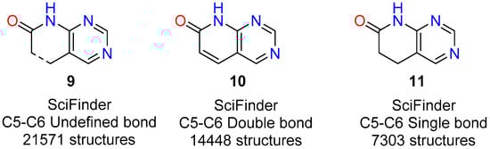Number of pyrido[2,3-d]pyrimidin-7(8H)-ones (2) retrieved using an undefined bond (9), double bond (10) and single bond (11) between C5 and C6, respectively.