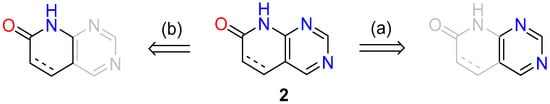 Although for a bicyclic heterocyclic system, such as the pyrido[2,3-d]pyrimidin-7(8H)-ones (2), it is possible to envisage several possible synthetic approaches, in this review we concentrated on two major alternative protocols: (a) construction from a preformed pyrimidine and (b) construction from a preformed pyridone (Figure 7).