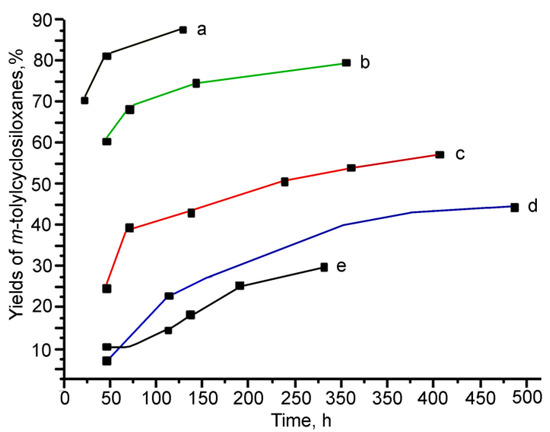 - Makarova, N.N.; Lyakhovetsky, Y.I.; Petrova, I.M.; Dolgushin, F.M.; Ikonnikov, N.S.; Peregudov, A.S.; Strelkova, T.V.; Klemenkova, Z.S. A study of the polycondensation of (tetrahydroxy)(tetraaryl)cyclotetrasiloxanes under equilibrium and non-equilibrium conditions in the presence and absence of montmorillonite. Polymers 2018, 10, 422. [Google Scholar] [CrossRef]