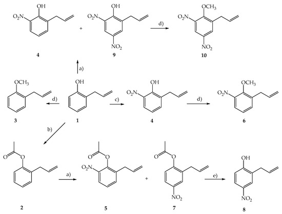 3.2.5. Preparation of 2-Allyl-6-Nitrophenol (4) and 2-Allyl-4,6-Dinitrophenol (9)