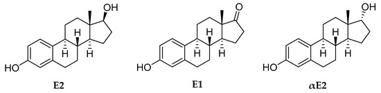 Chemical structure of 17β-estradiol (E2), estrone (E1) and 17α-estradiol (αE2).