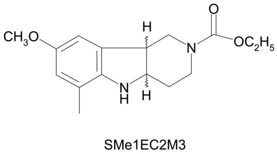 Structural formula of ((±)-cis ethyl 8-methoxy-6-methyl-3,4,4a,5,9bH-hexahydro-1H-pyrido[4,3-b]indole-2-carboxylate (SMe1EC2M3).