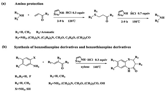 APA StyleDai, Z., Tian, Q., Li, Y., Shang, S., Luo, W., Wang, X., Li, D., Zhang, Y., Li, Z., & Yuan, J. (2019). Michael Addition Reaction Catalyzed by Imidazolium Chloride to Protect Amino Groups and Construct Medium Ring Heterocycles. Molecules, 24(23), 4224. https://doi.org/10.3390/molecules24234224