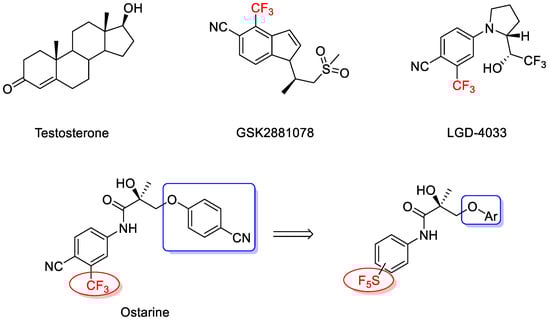 It appears that the strong electron-withdrawing effect of trifluoromethyl in SARMs plays a key role in AR binding [,,]. Since none of the reported SARMs bears SF5 moiety, we decided to study the possibility and effect of replacing the CF3 group with SF5 substituents.
