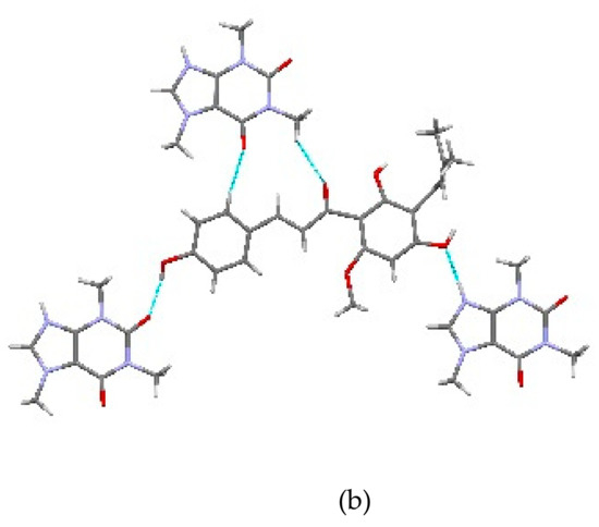 - Falk, M.; Gil, M.; Iza, N. Self-association of caffeine in aqueous solution: An FT-IR study. Can. J. Chem. 1990, 68, 1293–1299. [Google Scholar] [CrossRef]