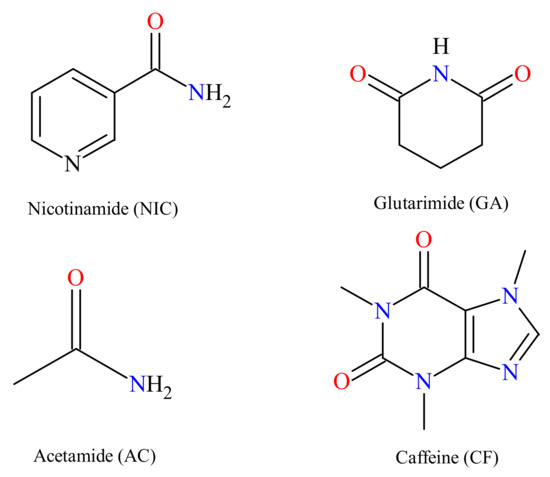 Xanthohumol purchased from Sigma-Aldrich (Darmstadt, Germany) with purity of >98% was recrystallized from acetonitrile. Nicotinamide, glutarimide, acetamide, caffeine, and all used solvents were of analytical grade and were purchased from Sigma-Aldrich. The compounds used as coformers are included in the list of compounds authorized for the safe use as additives to food products, pharmaceutical preparations, and dietary supplements (so-called GRAS list (“Generally Recognized as Safe”) created by the FDA-American Food and Drug Agency).