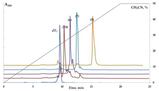 4.9. RP HPLC Analysis of the Oligonucleotide Conjugates