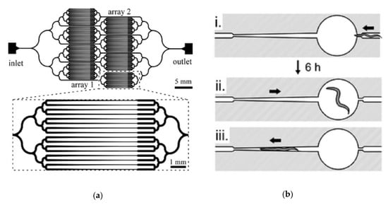 - San-Miguel, A.; Lu, H. Microfluidics as a tool for C. elegans research. WormBook 2013, 1–19. [Google Scholar] [CrossRef]