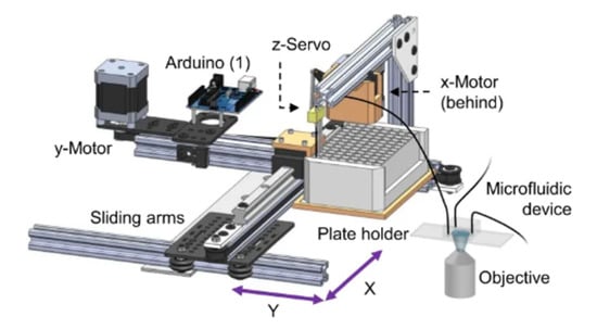 - Lagoy, R.C.; Albrecht, D.R. Automated fluid delivery from multiwell plates to microfluidic devices for high-throughput experiments and microscopy. Sci. Rep. 2018, 8, 6217. [Google Scholar] [CrossRef] [PubMed]