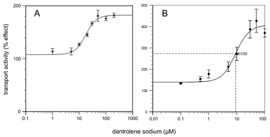 The main biochemical property of DAN in inhibiting the calcium release by RyRs suggests possible interactions with other transport systems present at a cellular and subcellular level. RyR1 has been described as a redox-sensitive system, for which reversible redox modifications of specific reactive cysteine residues (S-glutathionylation, S-nitrosylation) or their oxidation to form disulfide bridges, give rise to the active conformation responsible for calcium influx [24]. RyR1 shares this redox sensitization with many membrane transporters. We pointed at the study of DAN on carnitine/acylcarnitine carrier (CAC), an antiport shuttle localized at the inner mitochondrial membrane, involved in the trafficking of acylcarnitines into the mitochondrion for the synthesis of acetyl-CoA by β-oxidation pathway and ATP production [25,26]. CAC is also known to play a key role in the transport of acetyl-l-carnitine (ALC), a well-recognized nutraceutical [27].