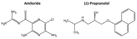 Chemical structures of amiloride and (±)-propranolol.