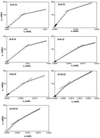- Brycki, B.; Szulc, A.; Koenig, H.; Kowalczyk, I.; Pospieszny, T.; Górka, S. Effect of the alkyl chain length on micelle formation for bis(N-alkyl-N,N-dimethylethylammonium)ether dibromides. C. R. Chim. 2019, 22, 386–392. [Google Scholar] [CrossRef]