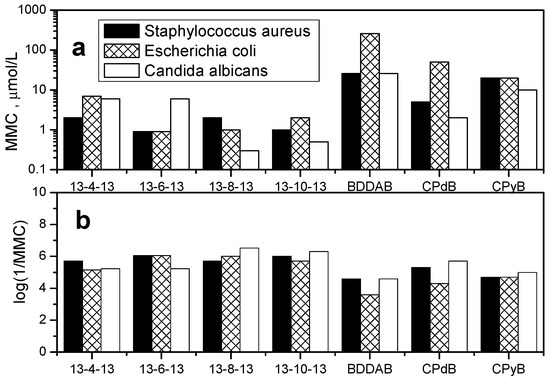 - Balgavý, P.; Devínsky, F. Cut-off effects in biological activities of surfactants. Adv. Colloid Interface Sci. 1996, 66, 23–63. [Google Scholar] [CrossRef]