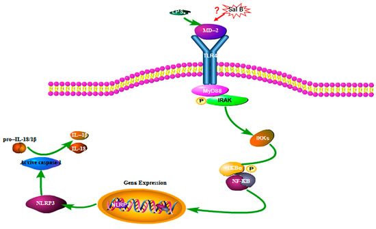 - Lin, K.M.; Hu, W.; Troutman, T.D.; Jennings, M.; Brewer, T.; Li, X.; Nanda, S.; Cohen, P.; Thomas, J.A.; Pasare, C. IRAK-1 bypasses priming and directly links TLRs to rapid NLRP3 inflammasome activation. Proc. Natl. Acad. Sci. USA 2014, 111, 775–780. [Google Scholar] [CrossRef]