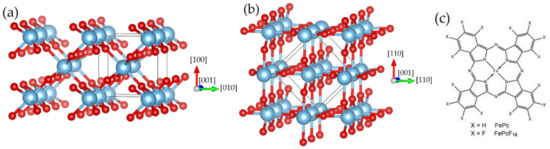 - Glaser, M.; Peisert, H.; Adler, H.; Polek, M.; Uihlein, J.; Nagel, P.; Merz, M.; Schuppler, S.; Chassé, T. Transition-Metal Phthalocyanines on Transition-Metal Oxides: Iron and Cobalt Phthalocyanine on Epitaxial MnO and TiO x Films. J. Phys. Chem. C 2015, 119, 27569–27579. [Google Scholar] [CrossRef]