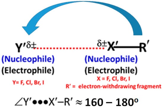 The propensity of covalently bound halogen to form a halogen bond generally follows the order R–Cl < R–Br < R–I, in line with the polarizability of the halogen derivative (Cl < Br < I) [2,3,4]. However, when a F atom shows a positive σ-hole on a given molecule and is involved in halogen bonding with a negative site, then (also taking astatine into account [43]) the stability ordering would become R–F < R–Cl < R–Br < R–I < R–At.