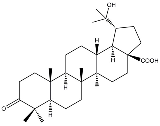 In our previous work, we found that the dichloromethane fraction from M. bealei leaves exerted an anti-inflammatory effect both in vitro and in vivo [13]. However, the active compounds in this extract remain unclear. Hence, biological activity guided separation was carried out to search for the active individuals. As a result, a lupane-type triterpene, 20-hydroxy-3-oxolupan-28-oic acid (HOA) (Figure 1) was found to exhibit significant anti-inflammatory effects and NF-κB inhibitory effects (unpublished data). To the best of our knowledge, the biological activities of HOA are unknown. Therefore, as part of our ongoing investigation, this study was conducted to investigate the anti-inflammatory properties and molecular mechanisms underlying the anti-inflammatory properties of HOA.
