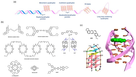Extensive studies of G4s and ligands that interact with them lead investigators to believe in the notion that G4s are able to widely form in guanine-rich regions of the genome [], in the context of cellular dynamics as exemplified by transcription, duplication, and DNA repair processes, in which DNA strands are transiently dissociated to generate flexible DNA single strands. Although numerous investigators have made tremendous efforts to obtain highly active G4 ligands, and some of them have attained great success in the development of drugs in vivo [,,,]; however, these drugs are still only midway towards approval for clinical use.