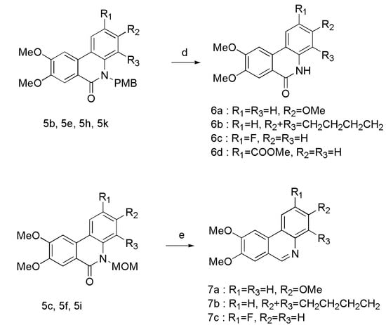 2-bromo-4,5-dimethoxy-N-(3-methoxyphenyl)-N-methylbenzamide (4a) (2.00 g, 5.26 mmol), Pd(oAc)2 (0.118 g, 0.526 mmol), P(o-tol)3 (0.32 g, 1.052 mmol), K2CO3 (2.90 g, 21.0 mmol), and dry DMF (20 mL) were mixed under nitrogen atmosphere, and the mixture was stirred at 100 °C overnight. After cooled to room temperature, the reaction mixture was extracted with CH2Cl2. The organic phase was washed with H2O and brine, and then dried over anhydrous Na2SO4. After being concentrated under reduced pressure, the residue was purified on silica gel column chromatography (PE/EA, v/v = 1:1) to obtain compound 5a. Same method was used to provide compounds 5b–l from 4b–l, respectively. Derivatives 5b, 5c, 5e, 5f, 5h, 5i, 5k, and 5l were used without purification and further characterization.