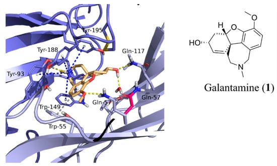 - Samochocki, M.; Hoffle, A.; Fehrenbacher, A.; Jostock, R.; Ludwig, J.; Christner, C.; Radina, M.; Zerlin, M.; Ullmer, C.; Pereira, E.F.; et al. Galantamine is an allosterically potentiating ligand of neuronal nicotinic but not of muscarinic acetylcholine receptors. J. Pharm. Exper. 2003, 305, 1024–1036. [Google Scholar] [CrossRef]