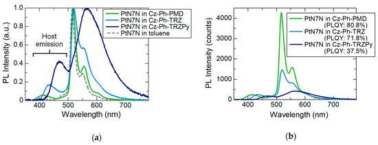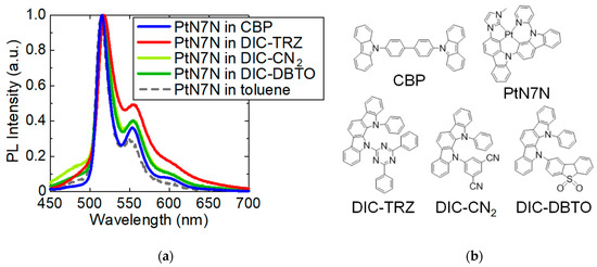 Iwasaki, Y.; Fukagawa, H.; Shimizu, T. Effect of Host Moieties on the Phosphorescent Spectrum of Green Platinum Complex. Molecules 2019, 24, 454. https://doi.org/10.3390/molecules24030454