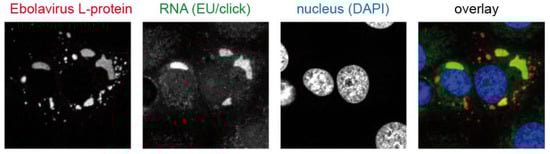 - Kalveram, B.; Lihoradova, O.; Indran, S.V.; Head, J.A.; Ikegami, T. Using click chemistry to measure the effect of viral infection on host-cell RNA synthesis. J. Vis. Exp. 2013. [Google Scholar] [CrossRef] [PubMed]