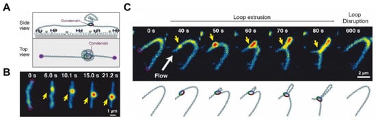 - Ganji, M.; Shaltiel, I.A.; Bisht, S.; Kim, E.; Kalichava, A.; Haering, C.H.; Dekker, C. Real-time imaging of DNA loop extrusion by condensin. Science 2018, 360, 102–105. [Google Scholar] [CrossRef] [PubMed]
