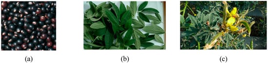 Representative Cajanus cajan (L.) Millsp. plants cultivar Taitung No. 3; (a) mature pea; (b) sample leaves; and (c) the early pod bearing stage harvest on 121 days after sowing.
