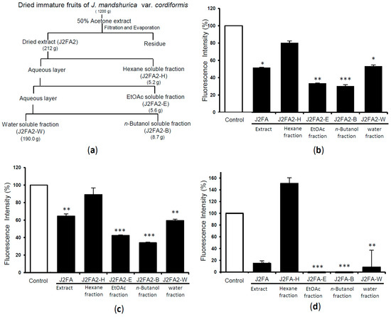 2.2. Extraction, Fractionation and Compound Isolation of Immature Fruits of J. mandshurica var. cordiformis and Their Activities