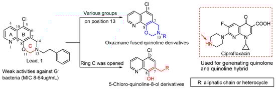 - Enquist, P.A.; Gylfe, A.; Hägglund, U.; Lindström, P.; Norberg-Scherman, H.; Sundin, C.; Elofsson, M. Derivatives of 8-hydroxyquinoline—Antibacterial agents that target intra- and extracellular Gram-negative pathogens. Bioorg. Med. Chem. Lett. 2012, 22, 3550–3553. [Google Scholar] [CrossRef] [PubMed]