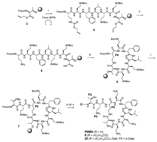 - Xu, W.L.; Cui, A.L.; Hu, X.X.; You, X.F.; Li, Z.R.; Zheng, J.S. A new strategy for total solid-phase synthesis of polymyxins. Tetrahedron Lett. 2015, 56, 4796–4799. [Google Scholar] [CrossRef]