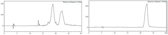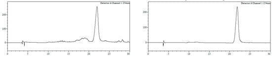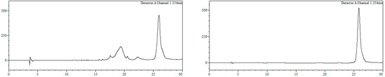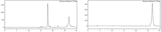 HPLC traces of crude (left) and purified (right) conjugate 22a. Detection wavelength: 254 nm.