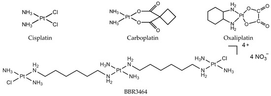- Farrell, N.P. Progress in platinum-derived drug development. Drugs Future 2012, 37, 795–806. [Google Scholar] [CrossRef]