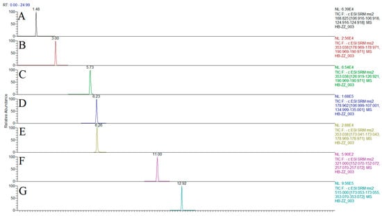 2.2. Optimization of Chromatographic and Mass Spectrometric Conditions
