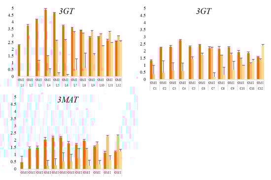 Change traits of expression levels of two unigenes encoding 3GT generally matched those of color phenotypes and total anthocyanin content. Since glycosylation is the first step of modification, and C3 glycosylation was very common in anthocyanin colored plants [24,25,26]. Therefore, 3GT may be a good choice for research in this regard. Gene expression patterns discussed in previous studies focus on commonly used genes at crosspoint of upstream of anthocyanin biosynthesis [27,28,29], e.g., CHS, DFR, etc. Compared with genes involved in downstream (anthocyanidin modification), gene involved in upstream (backbone forming) have more other functions besides their roles in anthocyanin biosynthesis [30,31,32]. Besides, abundant and durable flower colorations are largely decided by the phase of modification [33,34,35,36]. That is why we focus on genes involved in anthocyanidin modification. Of course, comprehensive analysis of expression pattern of all genes involved in the pathway is more preferable.